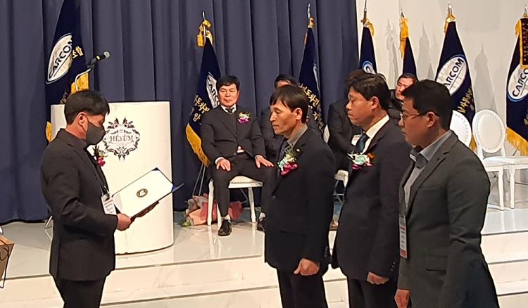 1¿ù 28ÀÏ ¼øÃµ½Ã ´õÇìÀ³ ¿þµùÄÁº¥¼Ç¿¡¼ ¿¸° »õÀü³²ÀÚµ¿Â÷Àü¹®Á¤ºñ»ç¾÷Á¶ÇÕ Á¦23ȸ Á¤±â ´ëÀÇ¿ø ÃÑȸ ¹× 11´ë ÀÌ»çÀå ÀÌÀӽĿ¡ ¹Ú»óö ÃÑÀåÀ» ´ë½ÅÇØ Âü¼®ÇÑ ¹Ì·¡ÀÚµ¿Â÷°øÇкΠ¼Õº´·¡ ±³¼ö´Â ¾çÁ¤¿ë ÀÌ»çÀå°ú À̹éÇö ¼ö¼®ºÎÀÌ»çÀå¿¡°Ô °¨»çÆÐ¸¦ Àü´ÞÇÏ°í ¾ç ±â°ü°£ Áö¼ÓÀûÀÎ Çù·ÂÀ» ¾à¼ÓÇß´Ù.