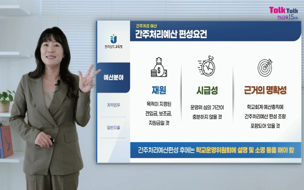 ¶ÇÇÑ, Ã¥ÀÚ¿Í ÇÔ²² óÀ½À¸·Î º¸±ÞÇÏ´Â ¡®Talk Talk Àü³²±³À° 15ºÐ¡¯ µ¿¿µ»óÀº ¡®°¨»ç¾÷¹« ±æ¶óÀâÀÌ¡¯ Ã¥ÀÚ¿¡ ¼ö·ÏµÈ °¢ ºÐ¾ßº° °¨»ç »ç·Ê¸¦ ÀÌÇØÇϱ⠽±°Ô ¿µ»ó¿¡ ´ã¾Ò´Ù. Çб³ ±ÔÄ¢ ¹× Á¦ ±ÔÁ¤ °ü¸®, °è¾à ¾÷¹«, ÇÐÀû °ü¸® ¹× ¹æ°úÈÄ Çб³ ¾÷¹«, º¸°Ç ¹× ±Þ½Ä ¾÷¹« µî ÃÑ 4ÆíÀ¸·Î ±¸¼ºÇÔÀ¸·Î½á Çб³ ÇöÀåÀÇ ¾÷¹« È¿À²¼ºÀ» ³ôÀÏ ¼ö ÀÖÀ» °ÍÀ¸·Î ±â´ëµÈ´Ù.