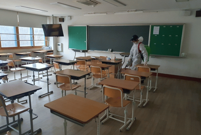 [ÅåÅå´º½º]±¤Áֽñ³À°Ã»ÀÌ ½ÅÇб⸦ ¸Â¾Æ °³ÇÐ Àü Äڷγª19 µî °¢Á¾ Àü¿°º´ ¿¹¹æÀ» À§ÇÑ Çб³ ³» Á¤±â ¹æ¿ª¼Òµ¶À» ½Ç½ÃÇϰí ÀÖ´Ù.