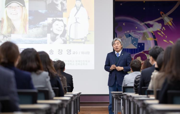 ¼Û⿵ ±³¼ö´Â ¡®ÇлýµéÀÇ ¾ÈÀüÀ» Áö۱â À§Çؼ ¿ì¸®°¡ ÇÒ ¼ö ÀÖ´Â °ÍÀº ¹«¾ùÀΰ¡?¡¯¶ó´Â Áú¹®À» ½ÃÀÛÀ¸·Î µ¶Ã¢ÀûÀÎ Àι®ÇÐÀû °üÁ¡¿¡¼ ¾ÈÀü Àνİú ¾ÈÀü ¹®È¿¡ ´ëÇØ ¼³¸íÇß´Ù.