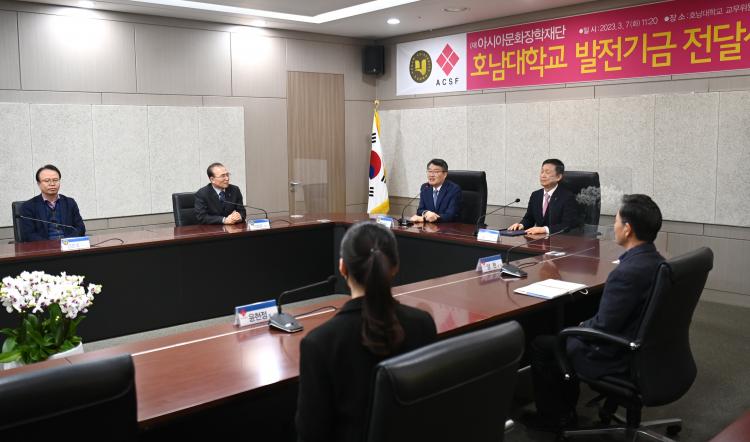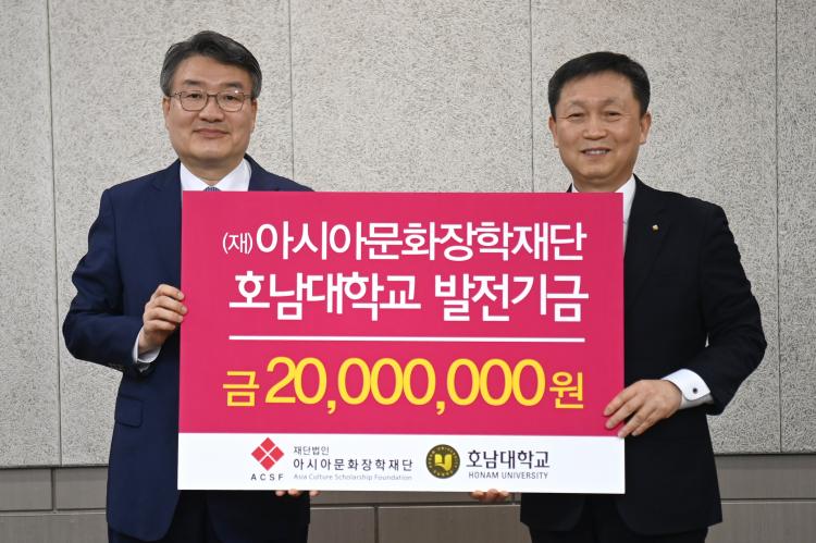 [ÅåÅå´º½º]±è¸í±º(¢ß±ÝÈ£ÁÖÅà ´ëÇ¥ÀÌ»ç) ¾Æ½Ã¾Æ¹®ÈÀåÇÐÀç´Ü ÀÌ»çÀåÀº 3¿ù 7ÀÏ ¿ÀÀü È£³²´ëÇб³ º»ºÎ 3Ãþ ±³¹«À§¿øÈ¸Àǽǿ¡¼ ¹Ú»óö È£³²´ëÇб³ ÃÑÀå¿¡°Ô ¸ù°ñ ¼¼Á¾ÇÐ´ç ¼³¸³À» À§ÇÑ ´ëÇÐ ¹ßÀü±â±Ý 2õ¸¸¿øÀ» ±âŹÇß´Ù.