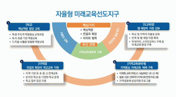 ÀÚÀ²Çü ¹Ì·¡±³À°¼±µµÁö±¸´Â ±³À°ÀåÀÌ ±³À°°¨ÀÇ ±ÇÇѰú ÀÚÀ²¼ºÀ» ´ëÆø À§ÀÓ¹Þ¾Æ Áö¿ªÀÇ ¹Ì·¡±³À° ¹æÇâÀ» ¼³Á¤ÇÏ°Ô µÈ´Ù.