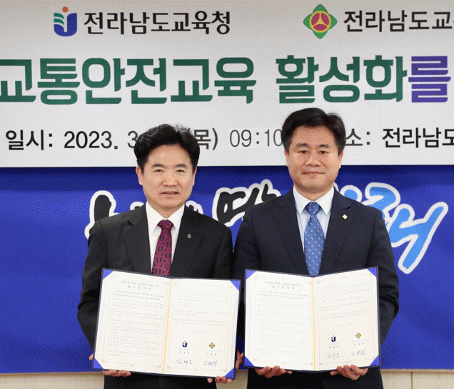 [ÅåÅå´º½º]Àü¶ó³²µµ±³À°Ã»°ú Àü³²±³Å뿬¼ö¿øÀÌ 3¿ù 23ÀÏ Àü¶ó³²µµ±³À°Ã» »óȲ½Ç¿¡¼ ¡®Ã£¾Æ°¡´Â ±³Åë¾ÈÀü±³À° Ȱ¼ºÈ¡¯¸¦ À§ÇÑ ¾÷¹«Çù¾à(MOU)À» ü°áÇß´Ù.