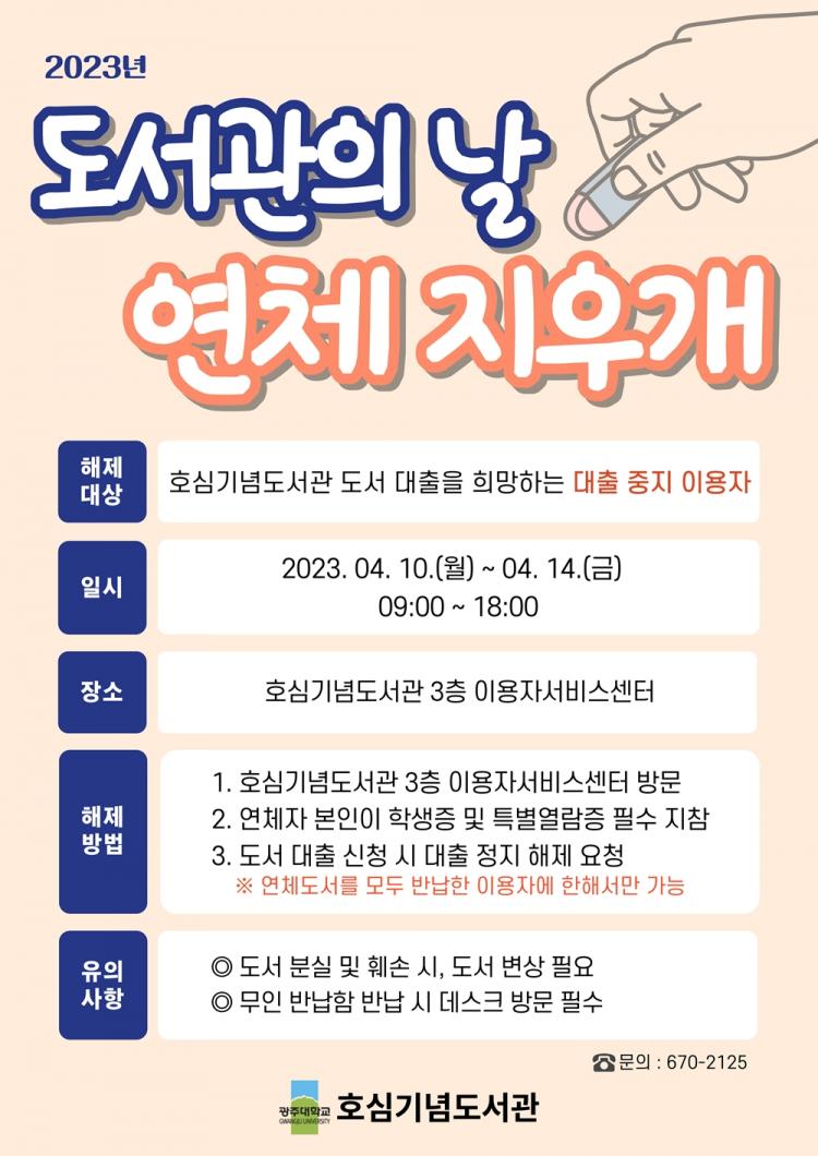 [ÅåÅå´º½º]±¤ÁÖ´ëÇб³(ÃÑÀå ±èµ¿Áø) È£½É±â³äµµ¼°üÀº ¡®µµ¼°üÀÇ ³¯(4¿ù 12ÀÏ)¡¯À» ¸Â¾Æ ¹Ý³³ ¿¬Ã¼ µîÀÇ ÀÌÀ¯·Î ±×µ¿¾È ´ëÃâÀÌ ÁßÁöµÈ Çлý°ú Áö¿ª¹Î µîÀ» ´ë»óÀ¸·Î ¡®¿¬Ã¼ Áö¿ì°³¡¯ ÇÁ·Î±×·¥À» ¿î¿µÇÑ´Ù.