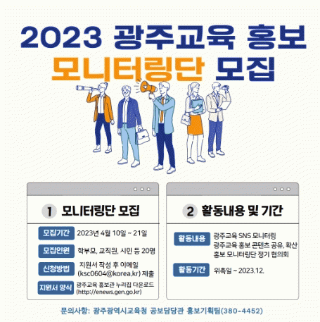[ÅåÅå´º½º]±¤Áֽñ³À°Ã»ÀÌ 10~21ÀÏ Çкθð, ½Ã¹ÎÀ» ´ë»óÀ¸·Î ¡®±¤ÁÖ±³À° È«º¸ ¸ð´ÏÅ͸µ´Ü¡¯À» ¸ðÁýÇÑ´Ù.