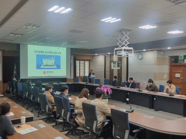 À̳¯ ¿¬¼ö´Â ±¤Áֽà °¨»çÀ§¿øÈ¸ ÀÓ´ëÁø °¨»ç2ÆÀÀåÀ» ÃʺùÇØ ¡®³»ºÎÅëÁ¦¿Í °¨»ç¿ª·® °È¡¯¶ó´Â ÁÖÁ¦·Î ÆîÃÄÁ³´Ù. ÀÛ³âºÎÅÍ °¨»ç¿ø ½É»çÆò°¡ Ç׸ñ¿¡ Ãß°¡µÈ ³»ºÎÅëÁ¦ ½Ã½ºÅÛ¿¡ °üÇÑ ³»¿ëÀ» Æ÷ÇÔÇØ ¹®´ä¼ ÀÛ¼º ¹æ¹ý µî °¨»ç±â¹ý¿¡ ´ëÇÑ Àü¹ÝÀûÀÎ ³»¿ëÀ» ´Ù·ð´Ù.