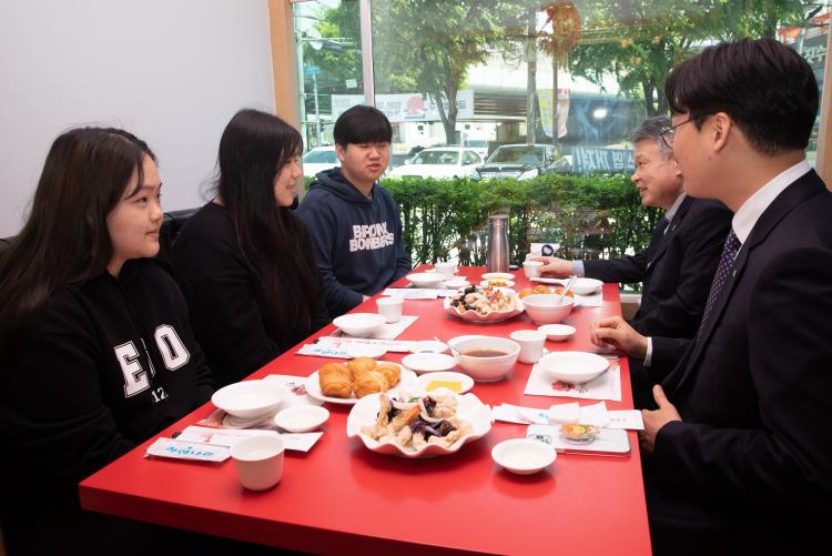±¤ÁÖ´ë Àα٠»ó°¡ Á߽Ĵ翡¼ ±è ÃÑÀå°ú ¿ÀÂùÀ» ÇÔ²² ÇÑ ÁÖÀΰøÀº Àι®»çȸ°úÇдëÇÐ ¼Ò¼Ó 2023Çйø »õ³»±â 3¸í(¾Æµ¿Çаú äÇϸ°, û¼Ò³â»ó´ãÆò»ý±³À°Çаú ÀÌÀº¾Æ, ½É¸®Çаú ÀÌÁØÇõ). À̵éÀº ¡°Á¶±Ý ºÒÆíÇÑ ÀÚ¸®°¡ µÉ ÁÙ ¾Ë¾Ò´Âµ¥ ¡®´ë¡¤°¡¡¤Àþ¡¤ÃÑ(´ëÇѹα¹¿¡¼ °¡Àå ÀþÀº ÃÑÀå) ´ä°Ô ³ó´ãÀ» °çµé¿© Ä£±ÙÇÏ°Ô ´ëÇØÁּż ȱâ¾Ö¾ÖÇÑ ½Ä»ç¸¦ Áñ°å´Ù¡±¸ç ÈíÁ·ÇÔÀ» µå·¯³Â´Ù.