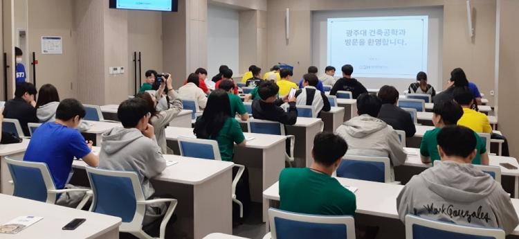 [ÅåÅå´º½º]±¤ÁÖ´ëÇб³(ÃÑÀå ±èµ¿Áø) °ÇÃà°øÇаú´Â 5¿ù 3ÀÏ ÀçÇлý ¹× ±³¼öÁø µî 50¸íÀÌ Âü¿©ÇÑ °¡¿îµ¥ ±¤ÁÖ ±Û·Î¹ú ¸ðÅͽº ÇöÀå °ßÇÐÀ» ½Ç½ÃÇß´Ù.