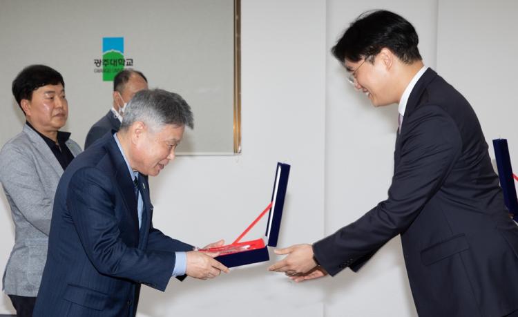 ±èµ¿Áø ÃÑÀåÀº ¡°±¤ÁÖ´ëÇб³¿¡ Àå±â ÀçÁ÷ÇÏ¸é¼ ÅõöÇÑ »ç¸í°¨°ú ¼þ°íÇÑ ±³À°¾Ö ½ÇõÀ» ÅëÇØ Çб³¹ýÀΠȣ½ÉÇпøÀÇ Ã¢¼³Á¤½Å ±¸Çö°ú Çб³¹ßÀü¿¡ °øÇåÇÑ ±×µ¿¾ÈÀÇ ³ë°í¿¡ °¨»çµå¸°´Ù¡±°í Àå±â±Ù¼Ó ±³Á÷¿øµéÀ» °Ý·ÁÇß´Ù.