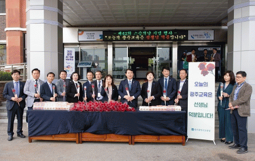 [ÅåÅå´º½º]±¤Áֽñ³À°Ã»ÀÌ Á¦42ȸ ½º½ÂÀÇ ³¯À» ¸Â¾Æ ¿ÀÀü 8½Ã º»Ã» Çö°ü¿¡¼ ¡®¿À´ÃÀÇ ±¤ÁÖ±³À°Àº ¼±»ý´Ô ´öºÐÀÔ´Ï´Ù¡¯ Çà»ç¸¦ °³ÃÖÇß´Ù. Çà»ç¿¡¼´Â Ãâ±Ù±æ »ö¼ÒÆù °ø¿¬°ú ÇÔ²² Àü Á÷¿ø¿¡°Ô Ä«³×ÀÌ¼Ç ¹× ¶±À» Àü´ÞÇß´Ù.