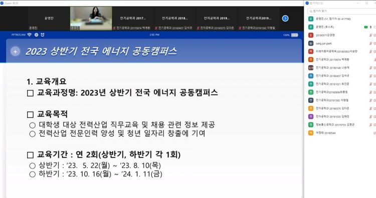 [ÅåÅå´º½º]È£³²´ëÇб³ ´ëÇÐÀÏÀÚ¸®Ç÷¯½º¼¾ÅÍ(¼¾ÅÍÀå ±èÀº¾Æ)´Â Àü·Â°Å·¡¼Ò ÁÖ°üÀ¸·Î ÁøÇàµÇ´Â ¡®2023 »ó¹Ý±â ºû°¡¶÷¿¡³ÊÁö¹ë¸® °øµ¿Ä·ÆÛ½º¡¯ °úÁ¤ Âü¿© Çлý 19¸íÀ» ´ë»óÀ¸·Î 5¿ù 17ÀÏ ¿Â¶óÀÎ ¿À¸®¿£Å×À̼ÇÀ» ½Ç½ÃÇß´Ù.