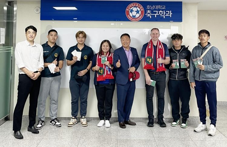 [ÅåÅå´º½º]È£³²´ëÇб³ ¹Ú»óö ÃÑÀåÀº 5¿ù 18ÀÏ ¿ÀÈÄ 4½Ã ¼±Áø Ã౸ »ê¾÷ ¹× ¹®È¸¦ üÇèÇϱâ À§ÇØ Çб³¸¦ ¹æ¹®ÇÑ Å±¹ÀÇ ¸¶À̵¹ ´ëÇÐ ¼Ò¼Ó ±³¼ö 2¸í, Çлý 4¸í°ú ȯ´ãÇϰí Ȱ¹ßÇÑ ±³·ù¸¦ Àç°³ÇØ ³ª°¡±â·Î Çß´Ù.