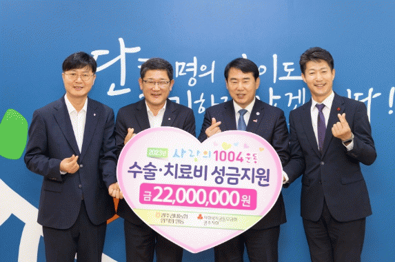 [ÅåÅå´º½º]±¤Áֽñ³À°Ã»ÀÌ 23ÀÏ ³óÇùÁß¾Óȸ ±¤ÁÖÁö¿ªº»ºÎ·ÎºÎÅÍ »ç¶ûÀÇ 1004¿îµ¿ÀÇ ÀÏȯÀ¸·Î Çлý Ä¡·áºñ Áö¿ø±Ý 2,200¸¸ ¿øÀ», NH³óÇùÀºÇà ±¤ÁÖ¿µ¾÷º»ºÎ·ÎºÎÅÍ ±³Åëºñ Áö¿øÀ» À§ÇÑ 3,300¸¸ ¿øÀ» Àü´Þ¹Þ¾Ò´Ù.