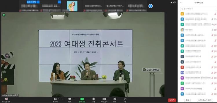 [ÅåÅå´º½º] È£³²´ëÇб³ ´ëÇÐÀÏÀÚ¸®Ç÷¯½º¼¾ÅÍ(¼¾ÅÍÀå ±èÀº¾Æ)´Â 5¿ù 23ÀÏ È£³²´ëÇб³ ÅëÇÕ´º½º¼¾ÅÍ¿¡¼ ¿Â¶óÀΰú ¿ÀÇÁ¶óÀÎÀ» º´ÇàÇÏ¿© ¿©´ë»ý Ãë¾÷¿ª·® °È¸¦ À§ÇÑ ¡®2023 ¿©´ë»ý ÁøÃëÄܼƮ¡¯¸¦ °³ÃÖÇß´Ù.