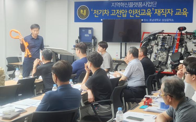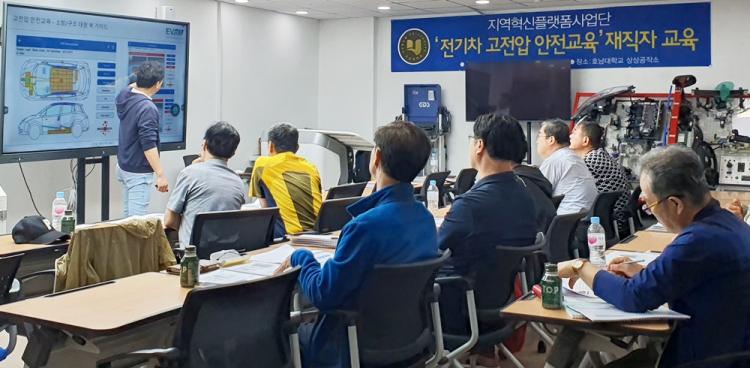 Àü±âÂ÷ °íÀü¾Ð ±³À°Àº À¯Àç¿ë ¸íÀå(Çö´ëÀÚµ¿Â÷), ÀÌÈÄ°æ ´ëÇ¥(EVALL)¸¦ ÃÊûÇÏ¿© Àü±âÀÚµ¿Â÷ ±âÃÊ¿Í °íÀü¾ÐÀ¸·Î ÀÎÇÑ ¾ÈÀü»ç°í¸¦ ¿¹¹æÇϱâ À§ÇÑ °íÀü¾Ð Â÷´Ü ÀýÂ÷¿Í Á¦¾î½Ã½ºÅÛ µîÀÇ ÀÌ·Ð ±³À°°ú Àü±âÂ÷ Áø´Ü¡¤Á¡°Ë ½Ç½ÀÀ» ÁøÇàÇß´Ù.