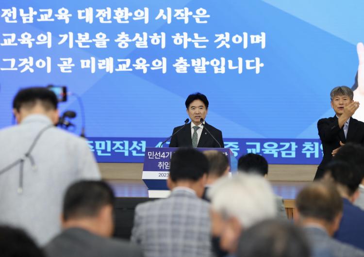 Àü¶ó³²µµ±³À°Ã»Àº 4ÀÏ Ã»»ç ´ëȸÀǽǿ¡¼ ÁÖ¹ÎÁ÷¼± 4±â Ãâ¹ü°ú ±è´ëÁß ±³À°°¨ ÃëÀÓ 1Áֳ⠱âÀÚȸ°ßÀ» °®°í ¡°Àü³²±³À°ÀÌ ¿ì¸® Áö¿ªÀÇ ¹Ì·¡¡¯¸¦ ¸¸µå´Â µ¥ ÁßÃßÀû ¿ªÇÒÀ» Çϰڴ١±¸ç À̰°ÀÌ Ãµ¸íÇß´Ù.