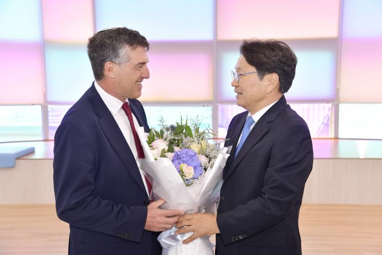 °±âÁ¤ ±¤ÁÖ±¤¿ª½ÃÀå°ú ¾ÆÅ°¹Ù Å丣 ÁÖÇÑÀ̽º¶ó¿¤ ´ë»ç´Â 5ÀÏ ¿ÀÀü Á¦14ȸ ±¤ÁÖºñ¿£³¯·¹ ±¹°¡°üÀÎ À̽º¶ó¿¤ ÆÄºô¸®¿ÂÀ» ÇÔ²² °ü¶÷ÇÏ°í »óÈ£ ¿ìÈ£ÁõÁø ¹æ¾ÈÀ» ³íÀÇÇß´Ù.