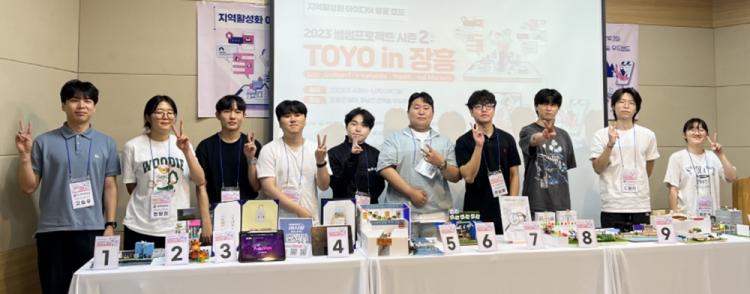 ¡®TOYO(acTivation fOr saturdaY traditiOnal market) in ÀåÈÀº ÀåÈï Åä¿ä½ÃÀå°ú Àα٠Áö¿ª °æÁ¦ Ȱ¼ºÈ¸¦ À§ÇÑ ¾ÆÀ̵ð¾î ¹ß±¼ Ä·ÇÁ·Î, ±¤ÁÖ´ëÇб³ ÀÎÅ׸®¾îµðÀÚÀÎÇаú¸¦ ºñ·ÔÇØ 5°³ ´ëÇÐ(±¤ÁÖ´ë, ¸ñÆ÷´ë, ¸ñÆ÷ÇØ¾ç´ë, µ¿½Å´ë LINC3.0»ç¾÷´Ü, Á¶¼±´ë â¾÷Áö¿ø´Ü) 22°³ Çаú 50¿© ¸íÀÇ ÇлýµéÀÌ Âü¿©Çß´Ù.