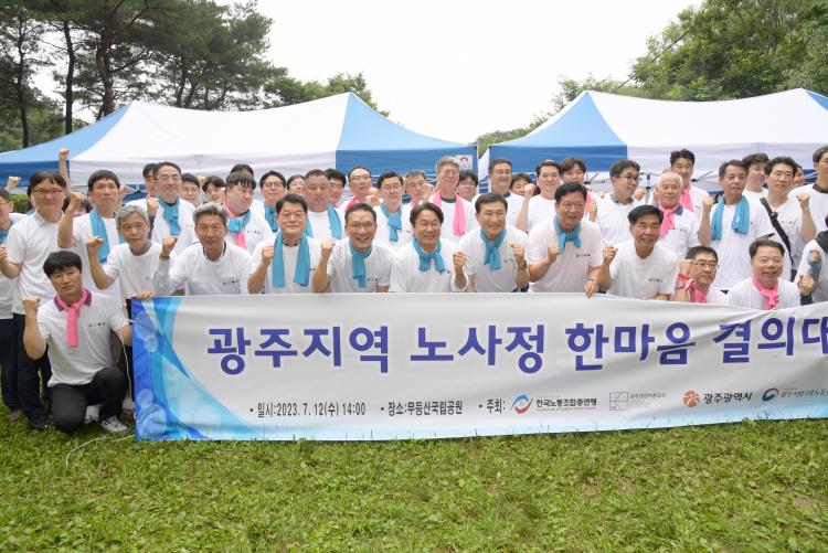 ±¤ÁÖ±¤¿ª½Ã¿Í Çѱ¹³ëÃѱ¤ÁÖº»ºÎ, ±¤Áְ濵ÀÚÃÑÇùȸ, ±¤ÁÖÁö¹æ°í¿ë³ëµ¿Ã»´Â 12ÀÏ ¿ÀÈÄ 2½Ã ¹«µî»ê±¹¸³°ø¿ø Áõ½É»ç ÀÔ±¸¿¡¼ ¡®ÇѸ¶À½ °áÀÇ´ëȸ¡¯¸¦ ¿°í ³ë»ç»ó»ýÇù¾àÀ» ü°áÇß´Ù.