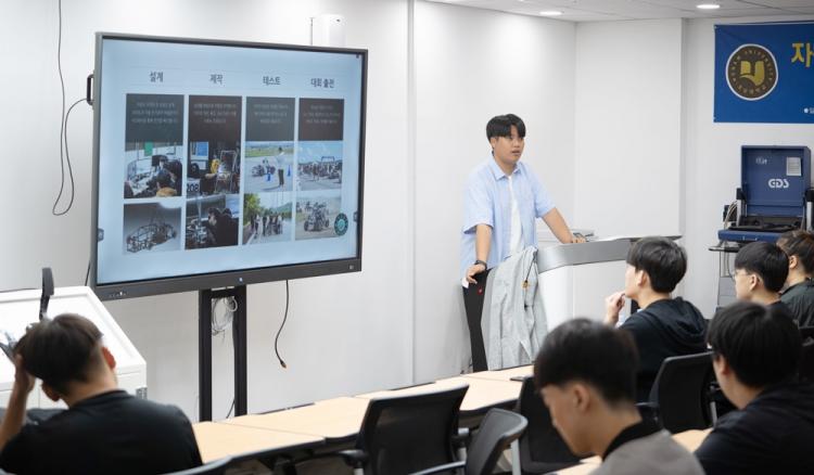 ¹Ì·¡ÀÚµ¿Â÷°øÇкΠȲº¸½Â ±³¼ö°¡ ÀÚÀ²ÁÖÇà ½Ã¿¬, 1/5 ½ºÄÉÀÏÀÇ ÀÚÀ²ÁÖÇà ´ëȸ ÃâÀü Â÷·® ¼Ò°³, ÀÚÀ²ÁÖÇà¿¡ »ç¿ëµÇ´Â ±âÃÊ ÄÚµùÇÁ·Î±×·¥À» üÇèÇØº¸´Â ½Ã°£À» °¡Á³´Ù. ¶ÇÇÑ ¹Ì·¡ÀÚµ¿Â÷°øÇкΠÀÚÀÛÀÚµ¿Â÷ µ¿¾Æ¸® ASPHALT Çлýµé°ú ÇÔ²² ÀÚÀÛÂ÷ ¼³°è ¹× Á¦ÀÛ °úÁ¤À» üÇèÇÏ°í ½ÇÁ¦ ±¸µ¿µÇ´Â ¸ð½À±îÁö ½Ã¿¬ÇØ º¸±âµµ Çß´Ù.