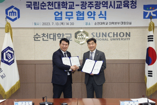 [ÅåÅå´º½º]±¤Áֽñ³À°Ã»ÀÌ 13ÀÏ ¼øÃµ´ëÇб³¿Í ±³À°¹ßÀü ¹× Áö¿ª »ê¾÷ ¸ÂÃãÇü ¿ì¼ö ÀÎÀç À°¼ºÀ» À§ÇÑ ¾÷¹«Çù¾àÀ» ü°áÇß´Ù°í ¹àÇû´Ù.