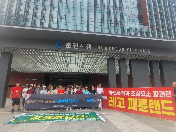 µµ¹ÎµéÀÇ °ÇÑ ¹Ý´ë·Î °¿øµµ¡¤Ãáõ½Ã°¡ ·¹°í·£µå Á¶¼ºÁö¸¦ Áßµµ°¡ ¾Æ´Ñ ´Ù¸¥ °÷À¸·Î ¿Å±â´Â Á¦¾ÈÀ» ÇßÀ¸³ª ½ÃÇà»çÀÎ ¸Ö¸°»ç°¡ ÄÛ Â¤¾î Áßµµ¿¡ ·¹°í·£µå¸¦ ¸¸µé°Ú´Ù °íÁýÇÏ¸ç ¹®ÈÀ¯ÀûÀ» ÈëÀ¸·Î µ¤¾î¹ö¸®°í ¸»¶ÒÀ» ¹Ú¾Æ ÈѼÕÇÏ´Â ÀÜÀÎÇÏ°í ÆÄ±«ÀûÀÎ ºÒ¹ý ÇàÀ§°¡ ¹ú¾îÁø °ÍÀÌ´Ù. ±¹Á¦¹ý»ó ÀüÀïÀÌ ¹ß¹ßÇÏ´õ¶óµµ ¹®ÈÀ¯ÀûÀº ¹Ýµå½Ã º¸Á¸ÇØ¾ß ÇÔ¿¡µµ ¸Ö¸°»ç¿Í °¿øµµ¡¤Ãáõ½Ã´Â »·»·ÇÏ°Ô ¿ì¸®ÀÇ ¼ÒÁßÇÑ ¼±»çÀ¯Àû À§¿¡ ÇÃ¶ó½ºÆ½ Àå³°¨ ³îÀÌÅ͸¦ Áö¾ú´Ù.