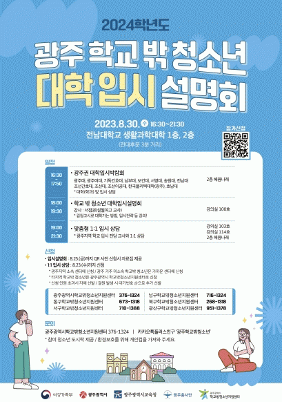 [ÅåÅå´º½º]±¤Áֽñ³À°Ã»ÀÌ ¿À´Â 30ÀÏ ¿ÀÈÄ 4½Ã30ºÐ~9½Ã30ºÐ Àü³²´ëÇб³ »ýȰ°úÇдëÇп¡¼ ¡®±¤ÁÖÇб³¹Ûû¼Ò³âÁö¿ø¼¾ÅÍ¡¯¿Í ÇÔ²² ¡®2024Çг⵵ ´ëÀÔ ´ëºñ ´ëÇÐÀԽü³¸íȸ¡¯ Çà»ç¸¦ °³ÃÖÇÑ´Ù°í 15ÀÏ ¹àÇû´Ù.