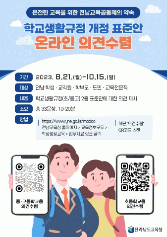 [ÅåÅå´º½º]Àü¶ó³²µµ±³À°Ã»Àº 8¿ù 21ÀϺÎÅÍ 10¿ù 15ÀϱîÁö Çб³»ýȰ±ÔÁ¤ °³Á¤ Ç¥Áؾȿ¡ ´ëÇÑ ¡®¿Â¶óÀÎ Àǰ߼ö·Å¡¯À» ½Ç½ÃÇÑ´Ù°í ¹àÇû´Ù.