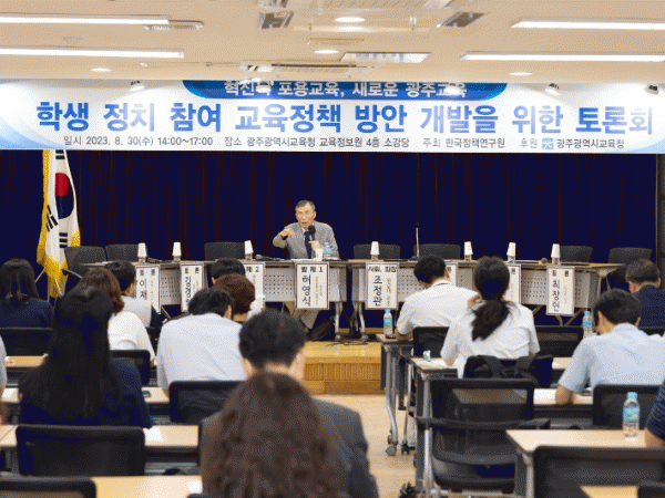 [ÅåÅå´º½º]±¤Áֽñ³À°Ã»Àº Áö³ 30ÀÏ ±¤ÁÖ±³À°Á¤º¸¿ø ¼Ò°´ç¿¡¼ Çѱ¹Á¤Ã¥¿¬±¸¿ø°ú ÇÔ²² ¡®Çлý Á¤Ä¡ Âü¿© ±³À° Á¤Ã¥ ¹æ¾È¡¯ °³¹ßÀ» À§ÇØ Çлý, Çкθð, ±³»ç, ½Ã¹Î´Üü ´ëÇ¥°¡ Âü¿©ÇÑ Åä·Ðȸ¸¦ °³ÃÖÇß´Ù.