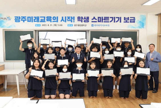 [ÅåÅå´º½º]±¤Áֽñ³À°Ã»ÀÌ 31ÀÏ ±¤ÁÖÈÁ¤ÁßÇб³¿¡¼ ¿ÃÇØ º¸±ÞÀÌ ½ÃÀÛµÈ Áß¡¤°íµîÇб³ ±³À°¿ë ÅÂºí¸´ PC µî ½º¸¶Æ®±â±â Àü´Þ½ÄÀ» ½Ç½ÃÇß´Ù°í ¹àÇû´Ù.