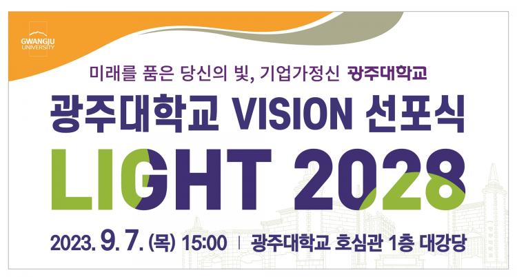 ¿ÃÇØ °³±³ 43ÁÖ³âÀ» ¸ÂÀº ±¤ÁÖ´ëÇб³´Â 9¿ù 7ÀÏ ¿ÀÈÄ 3½ÃºÎÅÍ ±³³» È£½É°ü 1Ãþ ´ë°´ç¿¡¼ ¡®LIGHT 2028¡¯ ºñÀü ¼±Æ÷½ÄÀ» °®°í, °±âÁ¤ ±¤ÁÖ±¤¿ª½ÃÀå°ú ÀÌÁ¤¼± ±¤Áֽñ³À°°¨À» ºñ·ÔÇØ Áö¿ª Á¤Ä¡, °æÁ¦, »çȸ, ±³À°, ¾ð·Ð µî »çȸ °¢°è ´ëÇ¥Àλç 50¿© ¸í, ´ëÇÐ ±¸¼º¿ø µî ³»¿Üºó 1õ¿© ¸í°ú ÇÔ²² ±¤ÁÖ´ëÇб³ÀÇ ¹Ì·¡ ¹ßÀü ¹æÇâÀ» °øÀ¯ÇÒ °èȹÀÌ´Ù.