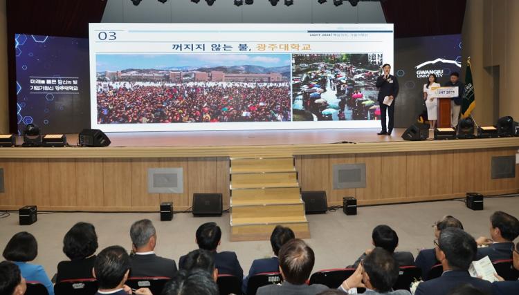 °³±³ 43ÁÖ³âÀ» ¸ÂÀº ±¤ÁÖ´ëÇб³(ÃÑÀå ±èµ¿Áø)°¡ ÁßÀå±â ¹ßÀü°èȹ ¡®LIGHT(Learning, Integration, Growth, Harmony, Technology) 2028¡¯ ºñÀüÀ» ´ë³»¡¤¿Ü¿¡ ¼±Æ÷Çß´Ù.