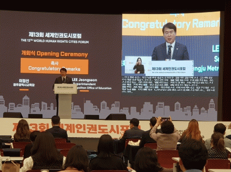 ÀÌÁ¤¼± ±³À°°¨Àº Ãà»ç¸¦ ÅëÇØ ¡°»çȸ¡¤°æÁ¦¡¤¹®ÈÀû ºÒÆòµîÀÇ ÇØ°áÀº Àηù °øµ¿ÀÇ ³ë·ÂÀÌ ¿ä±¸µÇ´Â °ÍÀÌ´Ù. Çϳª µÇ´Â Èû, Áï ¿¬´ë¸¦ ÅëÇÑ Çù·Â°ú ½Çõ·ÂÀÌ ¸ð¾ÆÁ®¾ß ÇÑ´Ù¡±¸ç ¡°±¤ÁÖ±³À°Àº À뱂 °¨¼ö¼ºÀÌ Ç³ºÎÇÑ °¡½¿ µû¶æÇÑ ¼¼°è¹ÎÁֽùÎÀ» ±æ·¯³»¾î ¼¼°è¿Í ¿¬´ëÇϰí ÇÔ²² ÇൿÇÏ°Ô ÇÒ °ÍÀÌ´Ù¡±°í ¸»Çß´Ù. ÀÌ¾î ¡°Á¦13ȸ ¼¼°èÀαǵµ½ÃÆ÷·³À» ÅëÇØ À뱂 ¾Õ¿¡ ³õÀÎ ºó°ï°ú ºÒÆòµî ÇØ°áÀ» À§ÇØ »óÈ£ ¿¬´ëÇÏ´Â °è±â°¡ µÇ±â¸¦ ±â´ëÇÑ´Ù¡±°í µ¡ºÙ¿´´Ù.