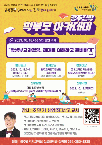 [ÅåÅå´º½º]±¤Áֽñ³À°Ã»ÀÌ ¿À´Â 13ÀÏ 19½Ã, ±¤ÁÖ±³À°¿¬±¸Á¤º¸¿ø 1Ãþ ´ë°´ç¿¡¼ ¡®ÇлýºÎ±³°úÀüÇü, Á¦´ë·Î ÀÌÇØÇϰí ÁغñÇϱ⡯¸¦ ÁÖÁ¦·Î Á¦5Â÷ ±¤ÁÖÁøÇÐ ÇÐºÎ¸ð ¾ÆÄ«µ¥¹Ì¸¦ °³ÃÖÇÑ´Ù.