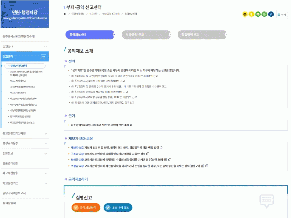 ½Ã±³À°Ã»Àº °øÀÍÁ¦º¸ Ȱ¼ºÈ¸¦ ÅëÇÑ Ã»·Åµµ¸¦ ³ôÀ̱â À§ÇØ Áö³ÇØ 12¿ù °øÀÍÁ¦º¸¿¡ ´ëÇÑ Áö¿ø°ú Á¦º¸ÀÚ º¸È£¸¦ À§ÇÑ Á¶·Ê¸¦ Á¦Á¤Çß´Ù. ÀÌÈÄ ¡ãºÎÆÐÇàÀ§ ¡ã°øÀÍÄ§ÇØ ÇàÀ§ ¡ãºÎÁ¤Ã»Å¹ ¹× ±Ýǰ µî ¼ö¼ö ÇàÀ§ ¡ã°øÁ÷ÀÚÀÇ ÀÌÇØÃæµ¹ ¹æÁö¹ý À§¹ÝÇàÀ§ ¡ã±¤Áֽñ³À°Ã» °ø¹«¿ø À§¹ÝÇàÀ§ µîÀÇ °øÀÍÁ¦º¸¸¦ ¹Þ¾Æ ó¸® ÁßÀÌ´Ù. ½Ã±³À°Ã»Àº À̹ø ¿Â¶óÀΠⱸ °³¼³¡¤¿î¿µ¿¡ µû¶ó ÇØ´ç »ç¹«¿¡ ´ëÇÑ ½Ã¹ÎµéÀÇ ´Éµ¿ÀûÀÎ Âü¿©¸¦ ±â´ëÇϰí ÀÖ´Ù.