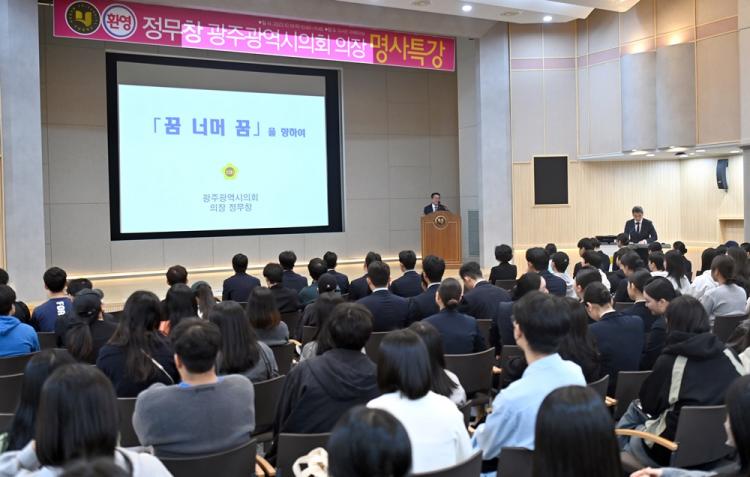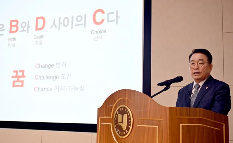 Á¤¹«Ã¢ ÀÇÀåÀº ¡°5³â ÈÄ ³ªÀÇ Á÷¾÷À» °í¹ÎÇϰí, ù Á÷¾÷Àº ¾ðÁ¦±îÁö ÇÒ °ÍÀΰ¡, 10³â ÈÄ ³ªÀÇ ²ÞÀº ¹«¾ùÀÌ°í ¾î¶»°Ô »ì¾Æ°¡°í ÀÖÀ»±î Á÷¾÷°ú ±× ÀÌ»óÀ» ³Ñ¾î¼´Â ³ªÀÇ °¡Ä¡´Â ¹«¾ùÀϱ¶ó°í ¹®Á¦¸¦ Á¦½ÃÇϸç Çлýµé¿¡°Ô ÀÚ½ÅÀÇ ¹Ì·¡ Á÷¾÷°ú ²ÞÀ» »ó»óÇØº¸µµ·Ï Çß´Ù.