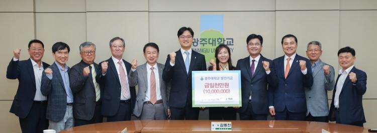 À±¿µ´ã ¹Ú»ç´Â ¡°±¤ÁÖ´ë °´Ü¿¡ ¼¸ç ÈĹèµéÀÇ ±³À°È¯°æ °³¼±°ú ´ëÇÐ ¹ßÀü¿¡ ¹Ì¾àÇϳª¸¶ ÈûÀ» º¸ÅÂ°í ½Í¾î ¹ßÀü±â±ÝÀ» ±âŹÇÏ°Ô µÆ´Ù¡±¸ç ¡°¾ÕÀ¸·Îµµ ±â¾÷°¡Á¤½Å ±¤ÁÖ´ëÀÇ ´õ Å« µµ¾à°ú ½Ç¹«´É·ÂÀ» °®Ãá ÈÄ¹è ¾ç¼º¿¡ Àû±Ø ³ª¼°Ú´Ù¡±°í ¹àÇû´Ù.