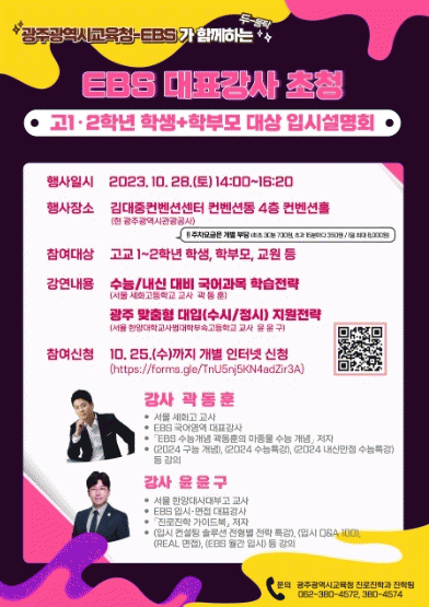 [ÅåÅå´º½º]±¤Áֽñ³À°Ã»ÀÌ ¿À´Â 28ÀÏ 14½Ã ±è´ëÁßÄÁº¥¼Ç¼¾ÅÍ ÄÁº¥¼ÇȦ¿¡¼ ¡®EBS ´ëÇ¥°»ç ÃÊû °í1¡¤2Çгâ Çлý ¹× Çкθð ´ë»ó ÀԽü³¸íȸ¡¯¸¦ °³ÃÖÇÑ´Ù.