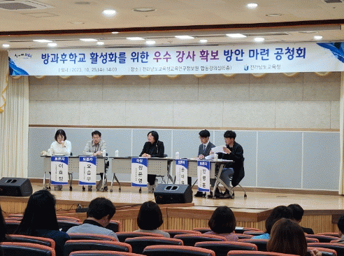 ¹æ°úÈÄÇб³ ¾÷¹« ´ã´çÀÚ ¹× Àü³² ±³À°°¡Á· 100¿© ¸íÀÌ Âü¼®ÇÑ À̳¯ °øÃ»È¸´Â ±èÁø³² Àü³²µµÀÇȸ ±³À°À§¿øÈ¸ ºÎÀ§¿øÀå Ãà»ç, ¡®¹æ°úÈÄÇб³ ¿ì¼ö °»ç È®º¸ ¹æ¾È ¸¶·Ã¡¯ ÁÖÁ¦ Åä·Ð, ûÁß°úÀÇ ÁúÀÇÀÀ´ä ¼øÀ¸·Î ÁøÇàµÆ´Ù.