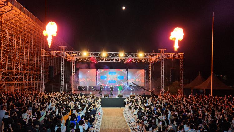 ¾ß°£¿¡´Â EDM DJ°ø¿¬°ú ºÒ²É¼î·Î ÇѲ¯ ´Þ±ÅÁø ¹«´ë À§¸¦ K-ÈüÇÕÀÇ °£ÆÇ ¡®»çÀÌ¸Õ µµ¹Ì´Ð¡¯À» ºñ·ÔÇØ ¡®·Î²¿¡¯, ¡®¿ì¿øÀ硯, ¡®Äí±â¡¯ µî ±¹³» ÃÖÁ¤»ó±Þ ÈüÇÕ ·¹À̺í AOMG ±º´ÜÀÌ ÃÑÃ⵿ÇÏ¿© ¹«´ë °÷°÷À» ÈÛ¾µ¸ç È·ÁÇÑ ¼î¸Ç½Ê°ú ÆÛÆ÷¸Õ½º·Î °¡À»¹ã °æÁÖÀåÀ» µé½â°Å¸®°Ô ¸¸µé¾ú´Ù.