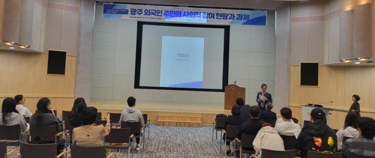 Çмú´ëȸ´Â ¡®±¤ÁÖ ¿Ü±¹ÀÎ ÁÖ¹ÎÀÇ »çȸÀû Âü¿© ÇöȲ°ú °úÁ¦¡¯¸¦ ÁÖÁ¦·Î 11¿ù 3ÀÏ ¿ÀÀü 10½Ã È£³²´ëÇб³ ±¹Á¦È¸Àǽǿ¡¼ ¿·È´Ù.