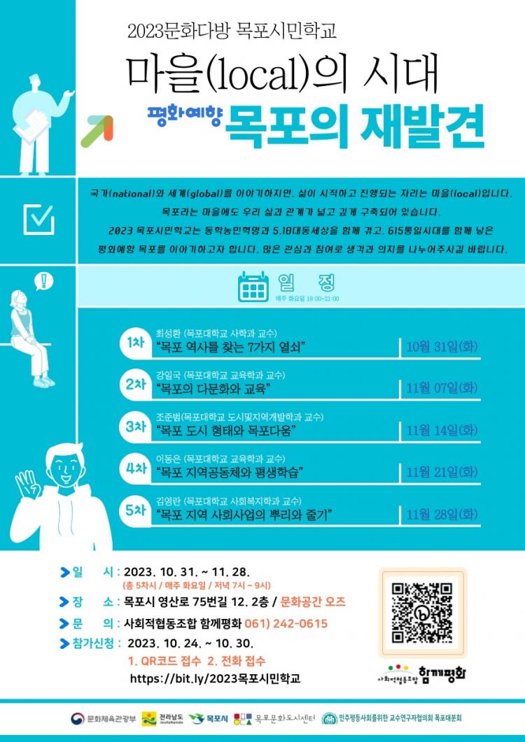 [ÅåÅå´º½º] ±¹¸³¸ñÆ÷´ëÇб³(ÃÑÀå ¼ÛÇÏö) ¹Î±³Çù(¹ÎÁÖÆòµî»çȸ¸¦ À§ÇÑ ±³¼ö¿¬±¸ÀÚÇùÀÇȸ) ¸ñÆ÷´ë ºÐȸ¿Í ±³À°¹®È°øµ¿Ã¼Çùµ¿Á¶ÇÕ ÇÔ²²ÆòÈ´Â Áö³ 10¿ù 31ÀÏ(È)ºÎÅÍ ¿À´Â 11¿ù 28ÀÏ(È)±îÁö ¸ÅÁÖ È¿äÀÏ Àú³á 7½ÃºÎÅÍ 9½Ã±îÁö ¹®È°ø°£ ¿ÀÁî(¸ñÆ÷½Ã ¿µ»ê·Î 75¹ø±æ 12, 2Ãþ)¿¡¼ ¡®2023. ¸ñÆ÷½Ã¹ÎÇб³¡¯¸¦ °³ÃÖÇÑ´Ù°í ¹àÇû´Ù.