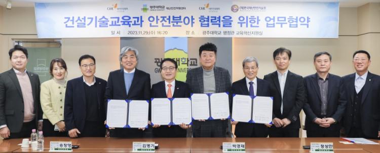 [ÅåÅå´º½º]±¤ÁÖ´ëÇб³(ÃÑÀå ±èµ¿Áø)´Â 29ÀÏ ±³³» ÇàÁ¤°ü 6Ãþ ±³À°Çõ½ÅÁö¿ø½Ç¿¡¼ ´ëÇѰǼ³Çùȸ ±¤ÁÖ±¤¿ª½Ãȸ, ´ëÇѰǼ³Çùȸ Àü¶ó³²µµÈ¸, (Àç)Çѱ¹Àç³¾ÈÀü±â¼ú¿ø°ú ¡®°Ç¼³±â¼ú±³À°°ú ¾ÈÀüºÐ¾ß Çù·ÂÀ» À§ÇÑ ¾÷¹«Çù¾à¡¯À» ¸Î¾ú´Ù.