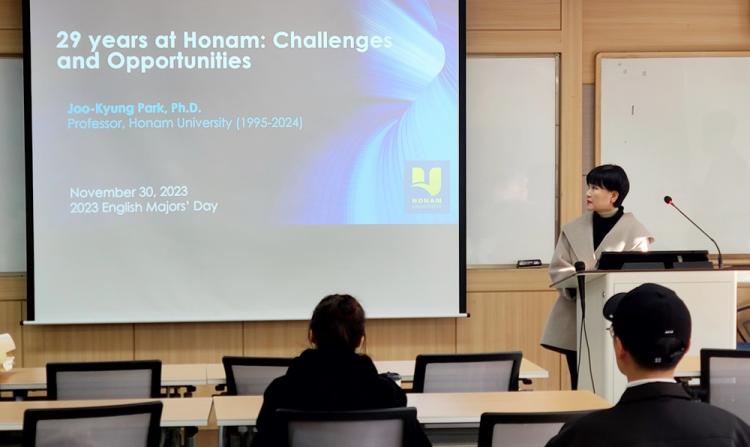 ÀÌ¾î ¹ÚÁÖ°æ ±³¼ö°¡ ¡®29 Years at Honam:Challenges and Opportunities¡¯(È£³² 29³â:µµÀü°ú ±âȸ)¶ó´Â Á¦¸ñÀ¸·Î ÅðÀÓ Çà»ç¸¦ °¡Á³´Ù.