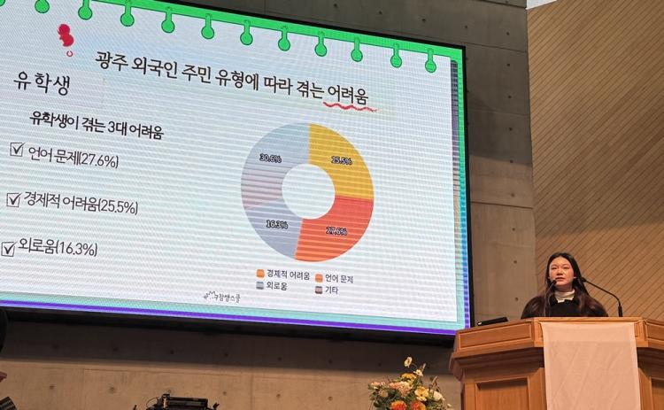 ±Û·ÎÄôٹ®ÈÀ¶ÇÕÀü°øÀ» À̼öÇϰí ÀÖ´Â ÇлýµéÀÌ Âü¿©ÇÑ À̹ø ÇмúÁ¦ Çà»ç¿¡´Â ¡ã±¤ÁÖÀÇ ´Ù¹®È ÇöȲ(³ªÁøÁÖ, »ó´ã½É¸®Çаú 4Çгâ) ¡ã¿Ü±¹ÀÎ ÀÌÁÖ¹ÎÀÇ ºÎÀûÀÀ ¿øÀÎ(»þÅãÀ§, Çѱ¹¾îÇаú 4Çгâ) ¡ã¿Ü±¹ÀÎ ÀÌÁֹΠÀûÀÀ Á¦°í ¹æ¾È(¹Ú¹Î°æ, »çȸº¹ÁöÇаú 4Çгâ) µî ¡®±¤ÁÖÀÇ ´Ù¹®È ÇöȲ°ú ¹®Á¦ ÇØ°á ¹æ¾È¡¯À» ÁÖÁ¦·Î ÃÑ 16°³ÀÇ ¹ßÇ¥°¡ ÁøÇàµÆ´Ù.