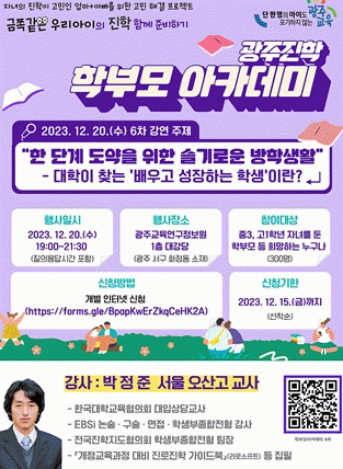 [ÅåÅå´º½º]±¤Áֽñ³À°Ã»ÀÌ ¿À´Â 20ÀÏ 19½Ã, ±¤ÁÖ±³À°¿¬±¸Á¤º¸¿ø 1Ãþ ´ë°´ç¿¡¼ ¡®ÇÑ ´Ü°è µµ¾àÀ» À§ÇÑ ½½±â·Î¿î ¹æÇлýȰ¡¯À» ÁÖÁ¦·Î Á¦6Â÷ÀÌÀÚ ¿ÃÇØ ¸¶Áö¸· ±¤ÁÖÁøÇÐ ÇÐºÎ¸ð ¾ÆÄ«µ¥¹Ì¸¦ °³ÃÖÇÑ´Ù.