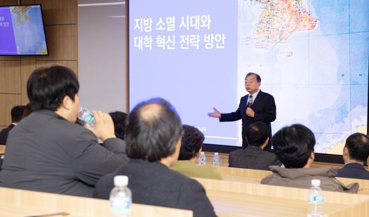 [ÅåÅå´º½º]±¤ÁÖ´ëÇб³(ÃÑÀå ±èµ¿Áø)´Â 13ÀÏ ¿ÀÈÄ ±³³» ÇàÁ¤°ü 3Ãþ ½º¸¶Æ®°Àǽǿ¡¼ ´ëÅë·ÉÁ÷¼Ó Áö¹æ½Ã´ëÀ§¿øÈ¸ ÀÌÁ¤Çö ºÎÀ§¿øÀåÀ» ÃÊû, ¡®Áö¹æ ¼Ò¸ê ½Ã´ë¿Í ´ëÇÐ Çõ½Å Àü·« ¹æ¾È¡¯¿¡ ´ëÇÑ ÃÊû Ư°À» ½Ç½ÃÇß´Ù.