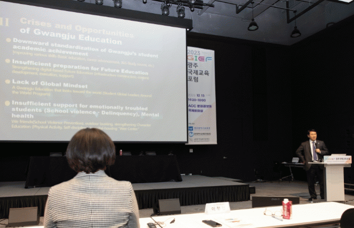 ±âÁ¶ °¿¬Àº ÀÌÁ¤¼± ±³À°°¨ÀÌ ¡®The New Direction of Future Education¡¯À» ÁÖÁ¦·Î ¿µ¾î·Î °¿¬Çß´Ù. ÀÌ ±³À°°¨Àº ±¤ÁÖ±³À°ÀÌ ´ç¸éÇÑ À§±â¿Í ±âȸ¸¦ ºÐ¼®Çϰí, ±³À°°ü, Çб³°ü, ÇàÁ¤¹æ½ÄÀÇ º¯È ¾ç»óÀ» »ìÆìº¸¾ÒÀ¸¸ç, ´Ù¾çÇÑ ½Ç·ÂÀÌ ¹Ì·¡°¡ µÇ´Â ±¤ÁÖ±³À° ½ÇÇöÀ» À§ÇÑ ±³À°Á¤Ã¥µéÀ» ¼Ò°³Çß´Ù.