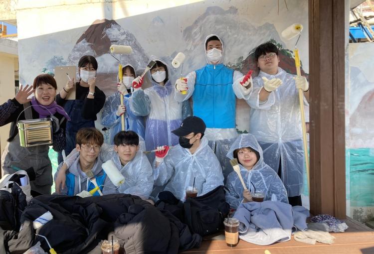 À̳¯ 1Çгâ 9¸íÀ¸·Î ±¸¼ºµÈ ¡®Ã»ÃáµéÆÀ¡¯ ÇлýµéÀº ¸¶À»Áֹεé°ú ÇÔ²² º®À» ±ú²ýÇÏ°Ô Ã»¼ÒÇÑ µÚ ÆäÀÎÆ® Ä¥ ÀÛ¾÷¿¡ ¹ú¿´´Âµ¥, Ã߿¾¾ÀÓ¿¡µµ ÀÚ¹ßÀûÀ̰í Àû±ØÀûÀÎ Âü¿©·Î 2Â÷ ÆäÀÎÆ®Ä¥±îÁö ½Å¼ÓÇÏ°Ô ³¡³Â´Ù. ÆäÀÎÆ®Ä¥ ÀÛ¾÷ °úÁ¤Àº ÇлýµéÀÌ »ó»ý, ÈÇÕ, ¼ÒÅë(°ø¸ðÀü ÁÖÁ¦)À̶ó´Â Á¦¸ñÀ¸·Î ¿µ»óÀ» Á¦ÀÛ, ¡®¼ôÆû ¿µ»ó °ø¸ðÀü¡¯¿¡µµ Âü¿©ÇÑ ¹Ù ÀÖ´Ù.