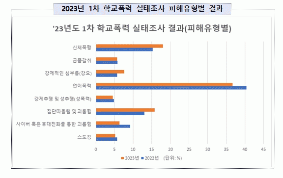 2023³â 1Â÷ Çб³Æø·Â ½ÇÅÂÁ¶»ç °á°ú Àüü Çб³Æø·Â ÇÇÇØÀÀ´äÀ²Àº 1.9%·Î, Áö³Çغ¸´Ù 0.3%p Áõ°¡ÇØ Àü±¹ ÇÇÇØ ÀÀ´ä·ü°ú µ¿ÀÏÇÑ °ÍÀ¸·Î ³ªÅ¸³µ´Ù. Çб³±Þº° Çб³Æø·Â ÇÇÇØÀÀ´äÀ²Àº Áö³Çغ¸´Ù ÃʵîÇб³´Â 0.5%p, ÁßÇб³´Â 0.5%p, °íµîÇб³´Â 0.1%p Áõ°¡Çß´Ù.